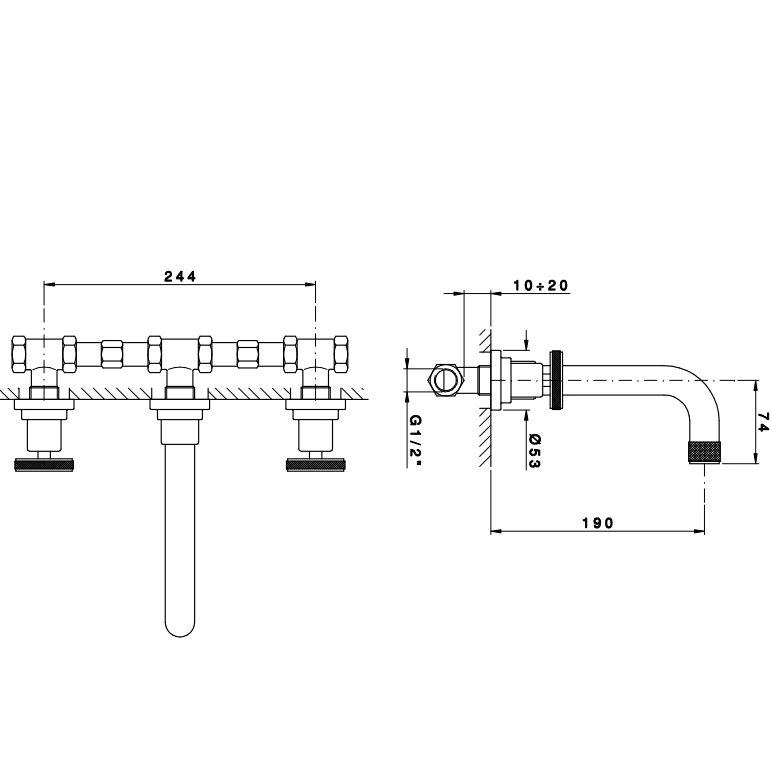 - Тип установки: настенный, на 3 отверстия.