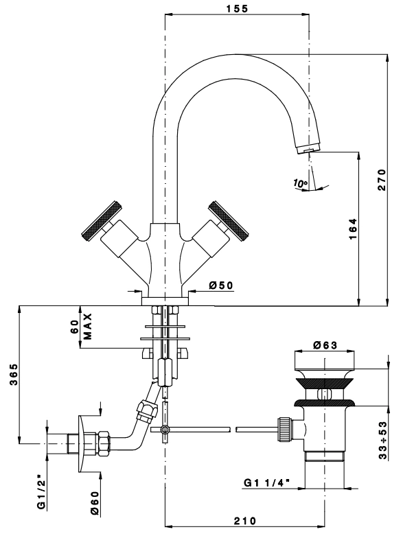- Поворотный излив с увеличенной высотой и вылетом обеспечивает простор для маневров при мытье посуды или умывании.