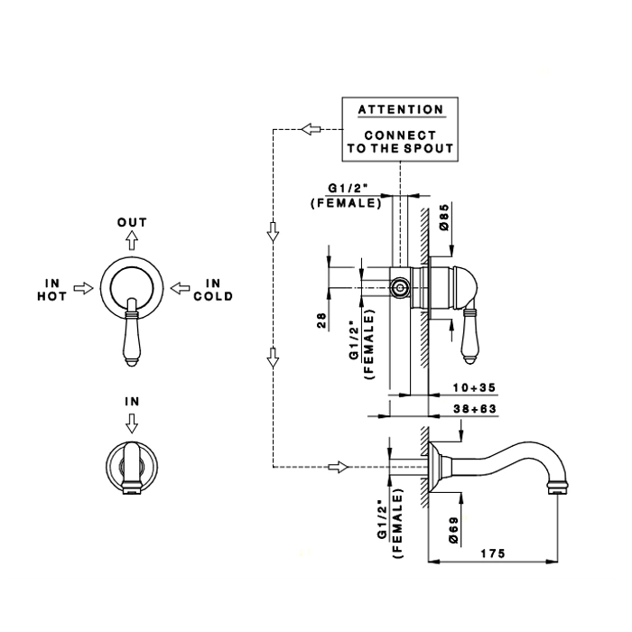 - Высота излива 175 мм оптимальна для комфортного использования с большинством моделей умывальников и раковин.