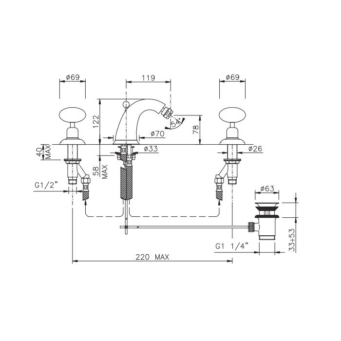 - Тип монтажа: на три отверстия (для биде).