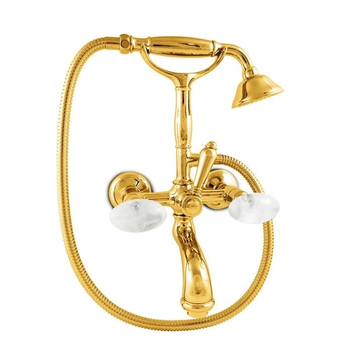 Смеситель для ванны Nicolazzi Cristallo Di Rocca с двумя ручками и переключателем душ/ванна в золотом цвете (2101GO09C)