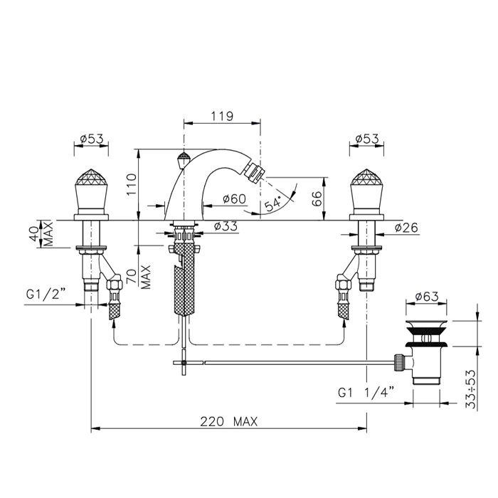 Смеситель для биде Nicolazzi Cristallo двухвентильный (хром, излив 119 мм) (2015CR22)
