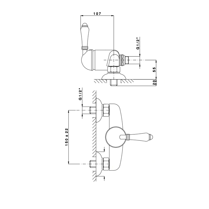 Данная модель оснащена удобным однорычажным механизмом, который позволяет одной рукой легко и точно регулировать температуру и напор воды. Система нижнего подключения 1/2 дюйма обеспечивает аккуратную и удобную скрытую подводку, что упрощает монтаж и способствует созданию эстетичного вида душевой зоны без лишних деталей.