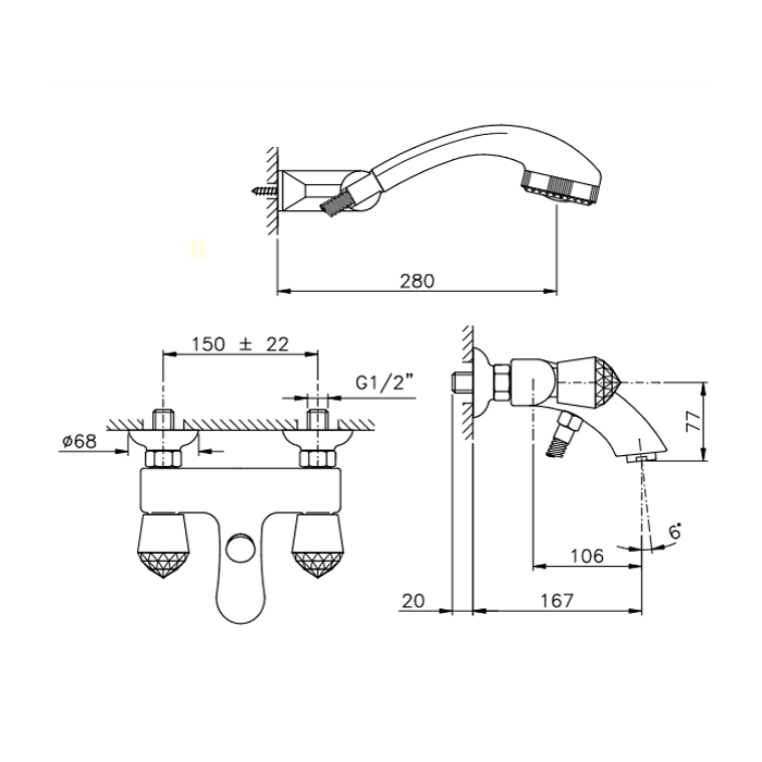 Смеситель для ванны с душем Nicolazzi Cristallo с двумя ручками (2002CR22) - это гармоничное сочетание проверенной временем конструкции и современного дизайна. Модель создана для тех, кто ценит простоту управления, долговечность и безупречный внешний вид сантехники.