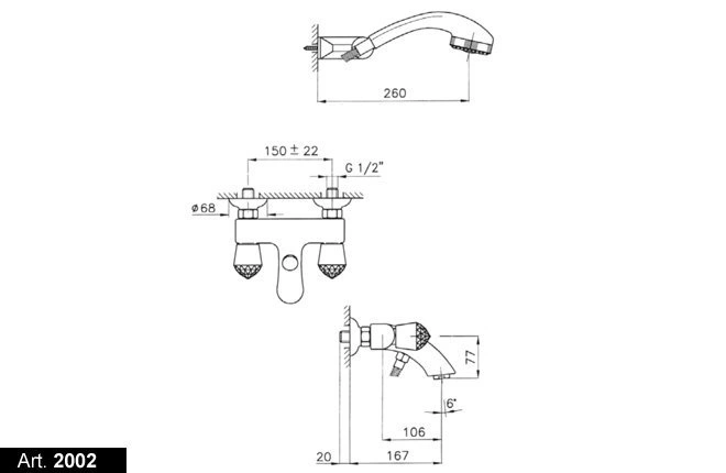 - Комплектация: смеситель, переключатель, душевой шланг, лейка, эксцентрики и декоративные накладки.