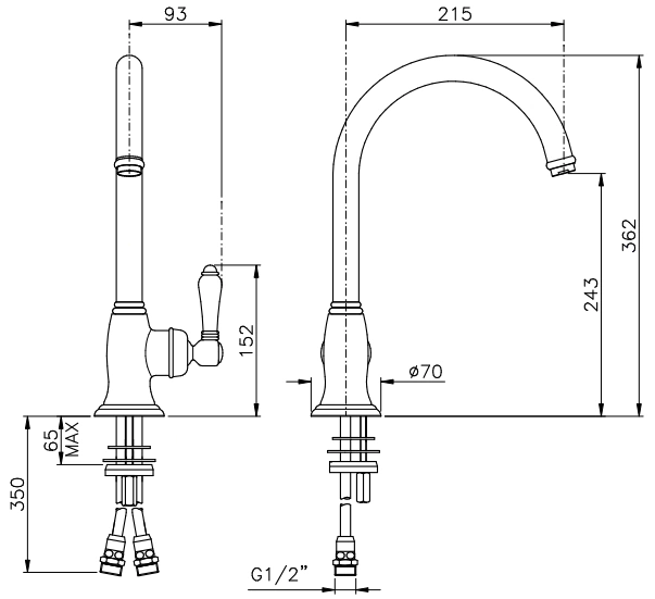 - Излив: Высокий, с вращением на 360°, для удобного наполнения крупной посуды.