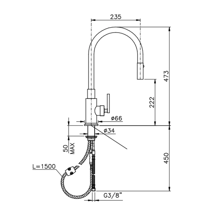 - Тип излива: поворотный, с выдвижной лейкой-душем.