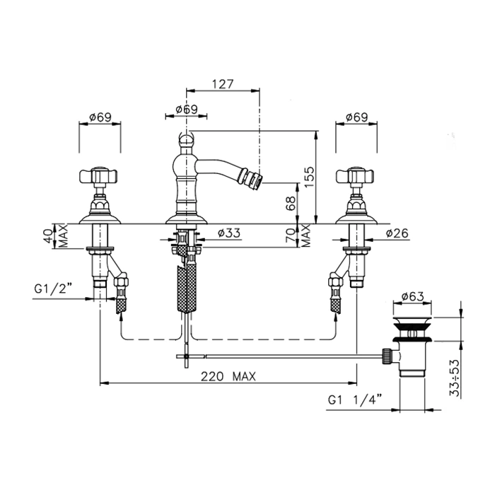 Смеситель для биде Nicolazzi Dames Anglaises с донным клапаном в бронзе