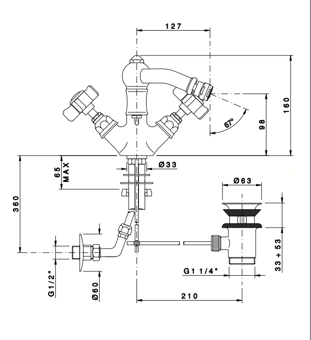 Данная модель спроектирована для комфортного и гигиеничного использования. Устройство оснащено двумя независимыми ручками, которые позволяют точно регулировать температуру и напор воды. Донный клапан обеспечивает оперативный спуск воды непосредственно в чашу биде. Такой тип арматуры считается традиционным и надежным, он прост в эксплуатации и интуитивно понятен.