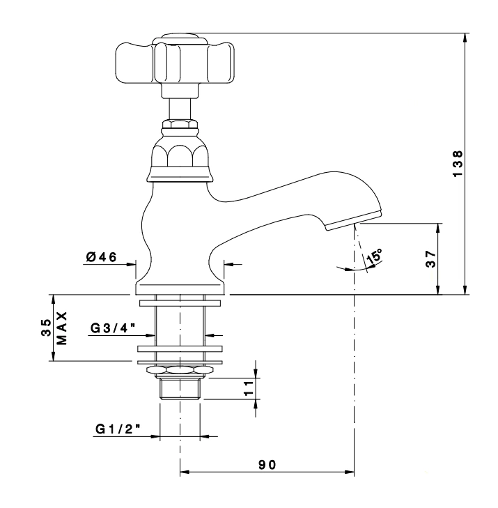 Смеситель для раковины Nicolazzi Dames Anglaises: однорычажный, на 1 отверстие, хром (1417CR18)