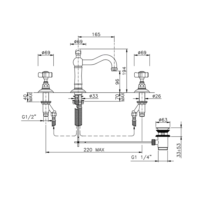 Смеситель для раковины Nicolazzi Dames Anglaises на 3 отверстия с донным клапаном