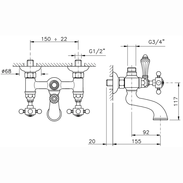 Смеситель для ванны и душа Nicolazzi настенный с двумя ручками, хром (1400CR70)