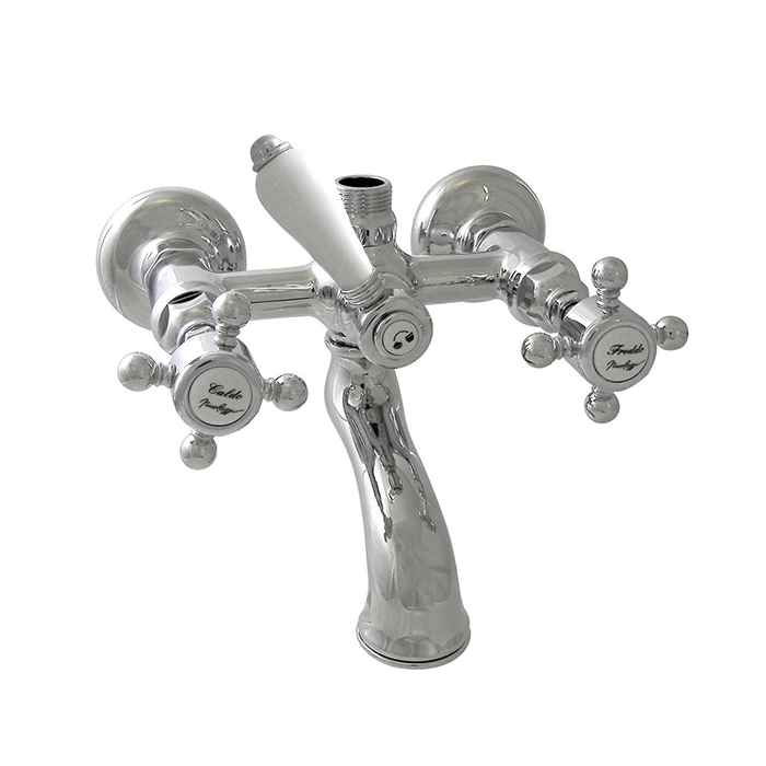 Этот настенный смеситель построен по традиционной двухвентильной схеме, что обеспечивает интуитивно понятное управление температурой и напором воды. Корпус изделия изготовлен из высококачественной латуни, что гарантирует устойчивость к коррозии и длительный срок службы даже при активной эксплуатации.