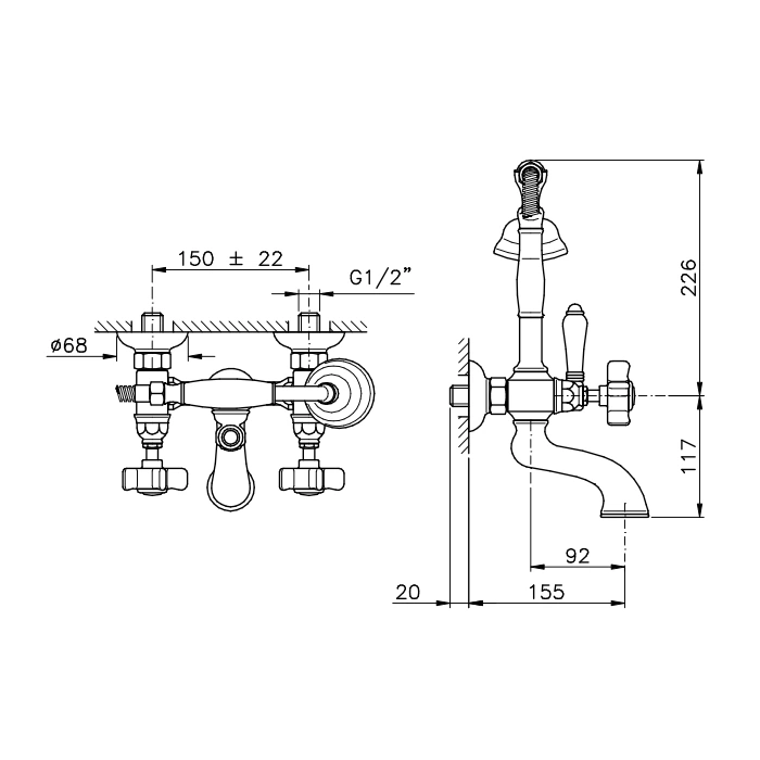 Смеситель для ванны Nicolazzi Dames Anglaises с ручным душем: стиль и функциональность