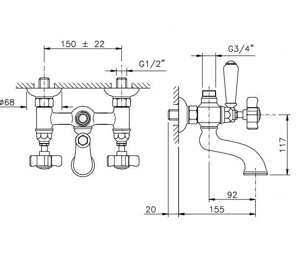Смеситель для ванны и душа Nicolazzi Dames Anglaises: верхнее подключение и классический стиль