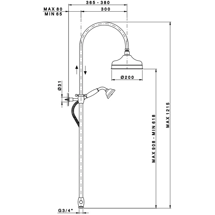 В комплект поставки входят все основные элементы для установки. Вы получите саму вертикальную стойку в стиле ретро, верхний душ (лейку) большого диаметра, ручной душ на гибком шланге, смесительный блок с переключателем режимов, а также необходимый крепеж и уплотнители. Все детали выполнены в едином дизайне из качественной бронзы.