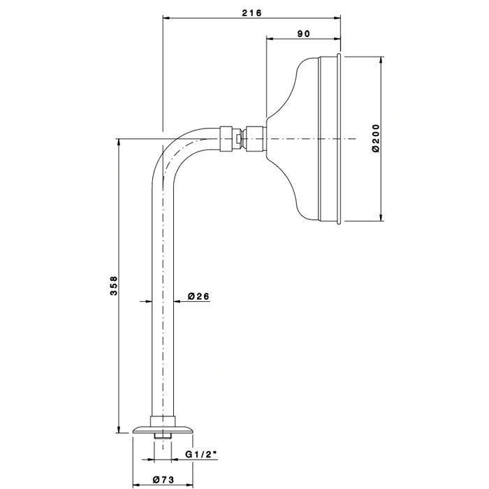 - Диаметр душевой лейки: 20 см, что обеспечивает оптимальное покрытие.