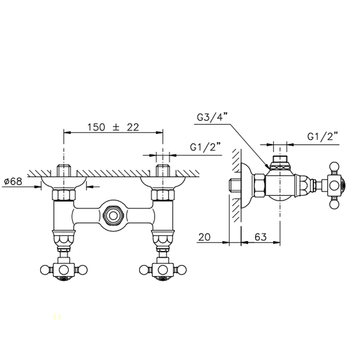 Смеситель для душа Nicolazzi El Capitan настенный, тёмная бронза (без лейки и шланга) (1425DB69)