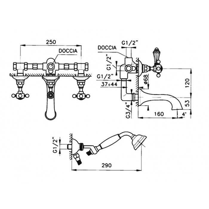 Смеситель для душевой стойки NICOLAZZI EL CAPITAN - это гармония цены, итальянского качества и проверенной функциональности, которая преобразит вашу процедуру принятия душа.