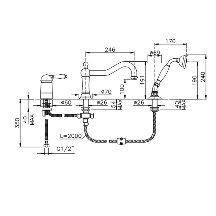 Смеситель Nicolazzi 3449BZ75 предназначен для систем с холодной и горячей водой. Для монтажа требуется три вывода: для излива, для ручного душа и для управления. Это решение позволяет вписать сантехнику в любой дизайн-проект.