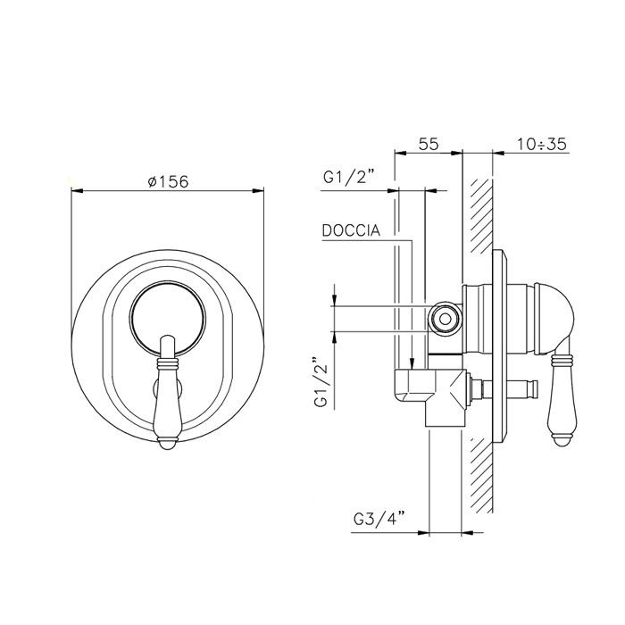 - Скрытый монтаж: Все рабочие элементы (термостатический или обычный картридж, переключающий клапан) монтируются в стену. Снаружи остаётся только изящная накладная панель (эксплуатационный модуль) с рукоятками, что облегчает уход и экономит пространство.