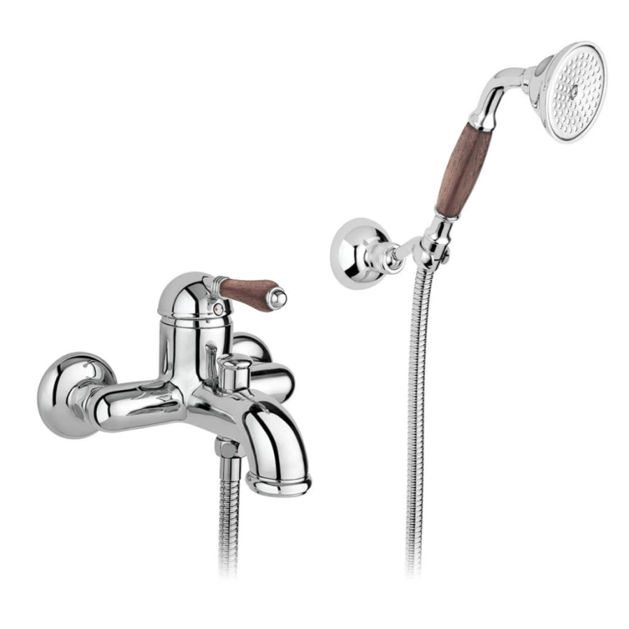 Настенный смеситель для ванны Nicolazzi Forest с ручным душем, хром, деревянные ручки (3401CR77)