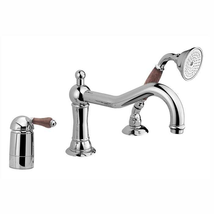 Смеситель для ванны Nicolazzi Forest с ручным душем и деревянными ручками (3449CR77)