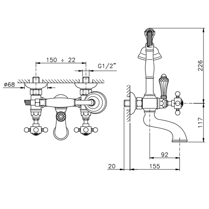 Это решение идеально подходит для стандартных ванн и душевых кабин. Установка на два выхода делает монтаж простым для сантехника, а скрытая часть защищена от внешних воздействий. Вы получаете стильный и функциональный элемент сантехники, который прослужит долгие годы.