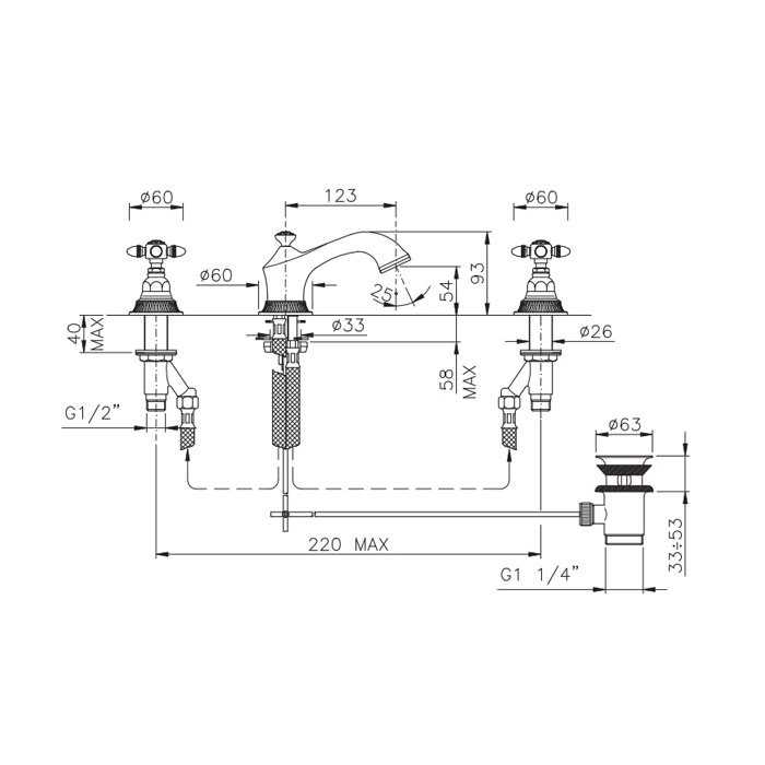 За изысканным внешним видом скрывается современная функциональность. Основные рабочие элементы изготовлены из латуни - материала, известного своей коррозионной стойкостью и длительным сроком службы. Внутри установлена надёжная керамическая картриджная система, которая исключает протечки и обеспечивает плавное, точное смешивание воды. Смеситель для раковины Nicolazzi Impero совместим со стандартными водопроводными системами и подходит для монтажа на раковины с тремя подготовленными отверстиями.