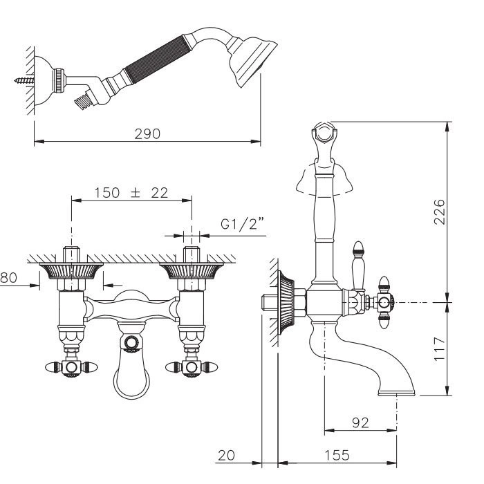 - Эргономичные маховики для плавной регулировки температуры и напора.