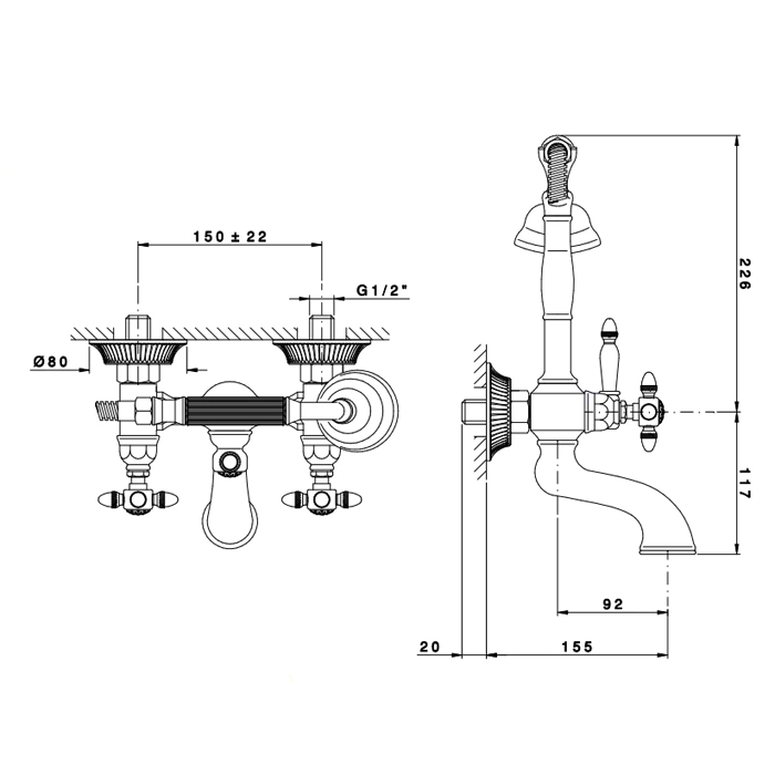 Данная модель относится к классическим настенным смесителям для ванны с установкой в два отверстия. Это проверенное решение, которое облегчает монтаж и последующее обслуживание. Прочный латунный корпус с покрытием хром гарантирует устойчивость к коррозии и сохраняет безупречный внешний вид на долгие годы.