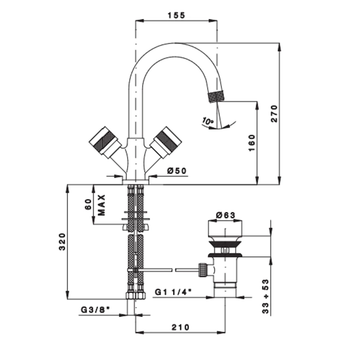 - Универсальный монтаж: смеситель Nicolazzi Khady подходит для установки на раковину или столешницу с одним или тремя монтажными отверстиями благодаря комплекту декоративных накладок.