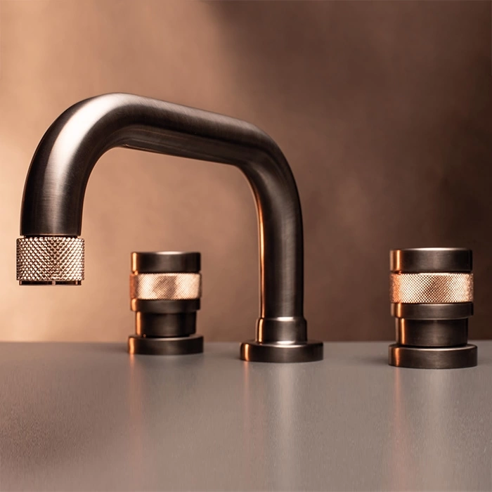 Смеситель Nicolazzi Khady на 3 отверстия в цвете Black Nichel/Rose Gold - это синтез итальянского дизайна и практичности. Он подходит для установки на раковины с тремя посадочными отверстиями и станет идеальным выбором для создания целостного образа в стиле modern, ар-деко или неоклассика. Его визуальная выразительность сочетается с простотой ухода и проверенной надежностью механизмов.