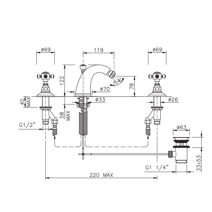 • Тип монтажа: На три отверстия (для биде или раковины с соответствующей конфигурацией).