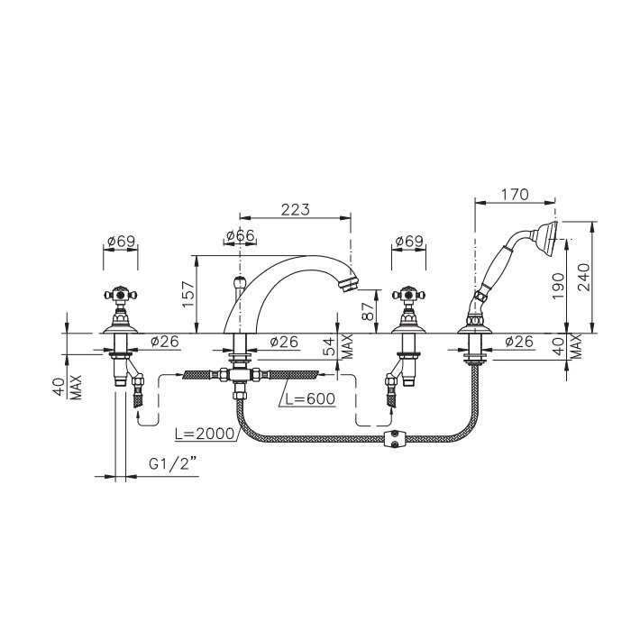 Модель предназначена для монтажа на ванну или борт ванной с четырьмя монтажными отверстиями. Такая установка обеспечивает классический, строгий внешний вид. Конструкция включает в себя отдельные рычаги для управления подачей воды и переключением между изливом и ручным душем, что делает использование интуитивно понятным.