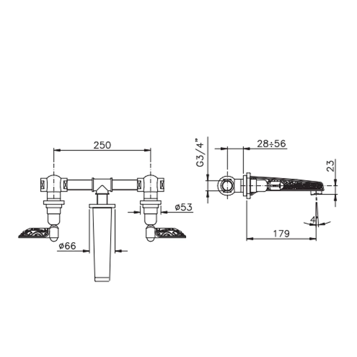 Смеситель для раковины Nicolazzi Liberty настенный, 3 отверстия, хром (1077CR16)