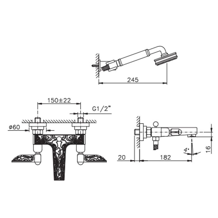 - Универсальный монтаж: Как классический настенный смеситель для ванны, модель Liberty подходит для стандартного межосевого расстояния. Комплектация включает все необходимые элементы для быстрой установки.