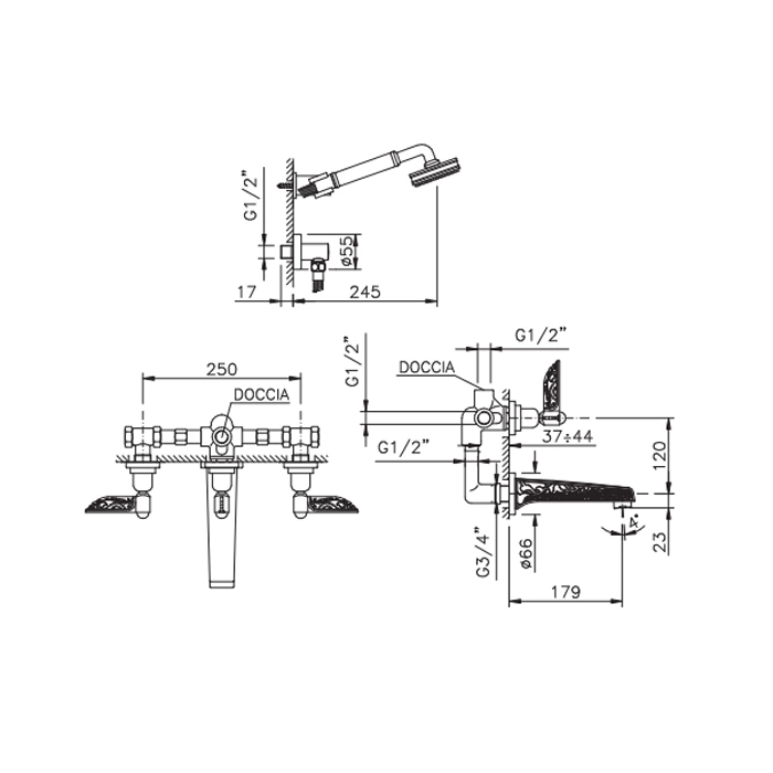 Встраиваемый смеситель для ванны Nicolazzi Liberty с настенным изливом: стиль и надежность