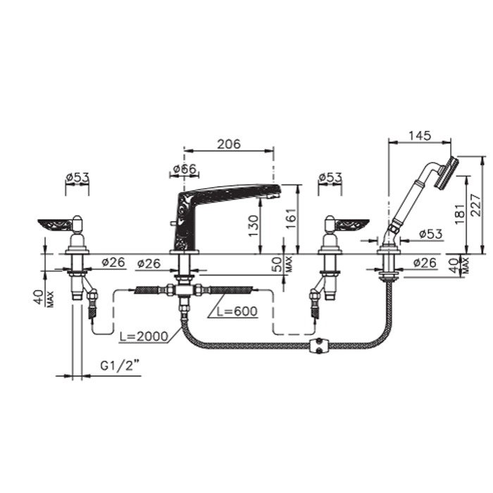Смеситель для ванны Nicolazzi Liberty с ручным душем, накладной монтаж, хром (1004CR16)