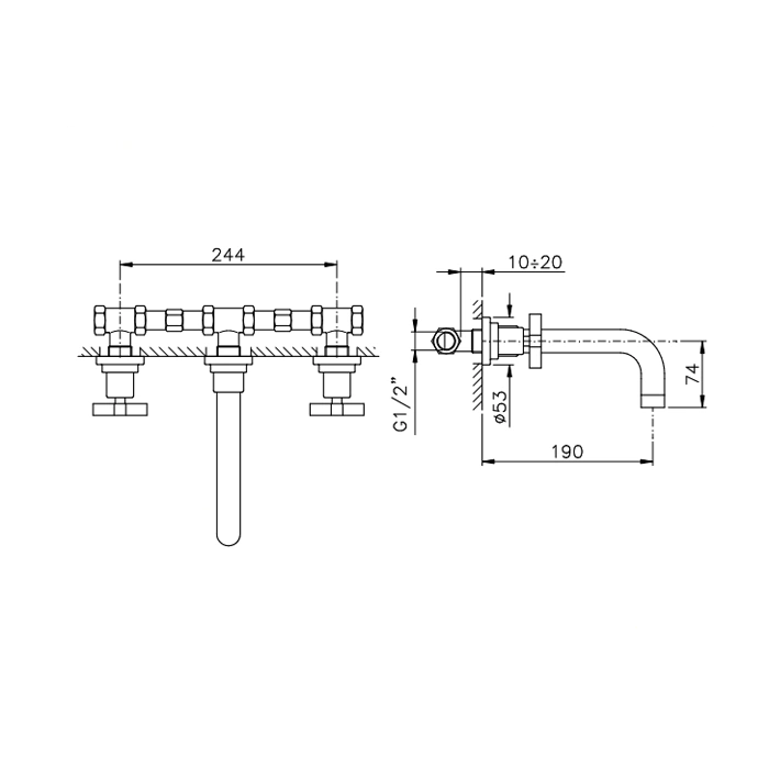 Данная модель предназначена для монтажа в три стандартных отверстия на раковине или столешнице. Это обеспечивает традиционное и удобное расположение элементов управления: два отдельных вентиля для регулировки горячей и холодной воды и высокий излив. Такая конструкция позволяет легко и точно настроить комфортную температуру и напор.