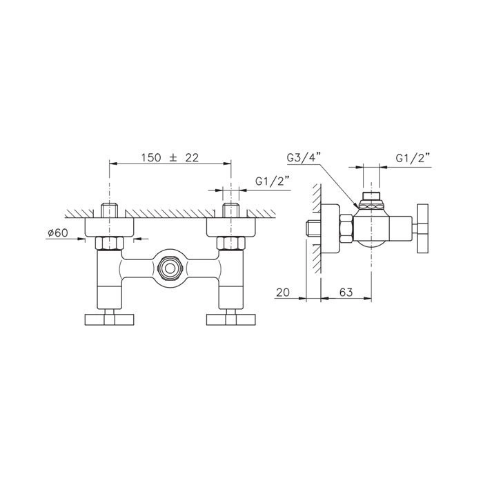 Этот смеситель для душа с двумя ручками обеспечивает интуитивно понятное и точное управление температурой и напором воды. Верхний вывод для лейки душа позволяет удобно разместить его на нужной высоте, что особенно важно для семей с детьми или для создания эффекта тропического душа.