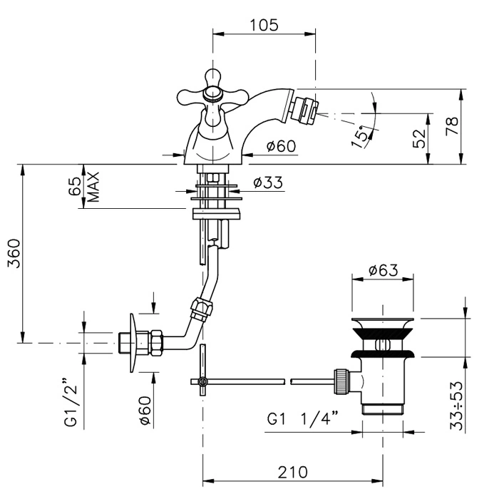 Смеситель для биде Nicolazzi Nuova Brenta (2534GB) в отделке Gold Brass - это решение для современной ванной комнаты, где важны стиль и функциональность. Модель с донным клапаном обеспечивает удобное и гигиеничное использование.