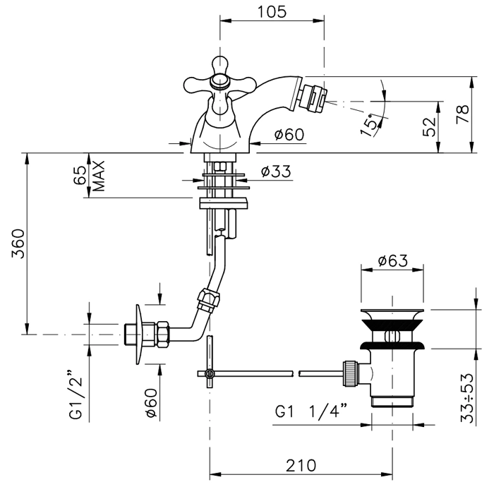Смеситель для биде Nicolazzi Nuva Brenta (2534CR) - это образец современной сантехнической арматуры, где классический дизайн сочетается с передовой инженерной мыслью. Модель предназначена для комфортного и гигиеничного использования, предлагая безупречное качество сборки и долговечность.