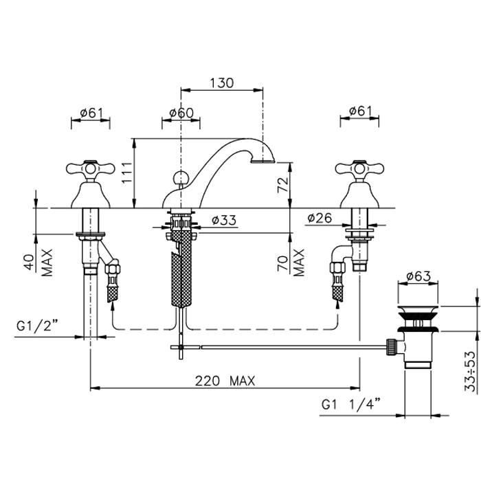 Смеситель для раковины Nicolazzi Nuova Brenta на 3 отверстия: латунь с покрытием бронза