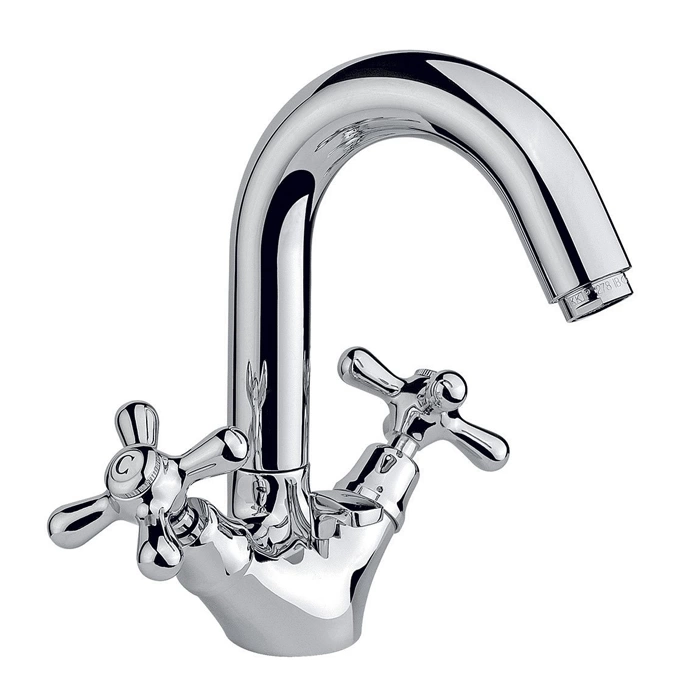 Двухрукояточный смеситель для раковины Nicolazzi Nuova Brenta с поворотным изливом и донным клапаном, хром (2536CR)