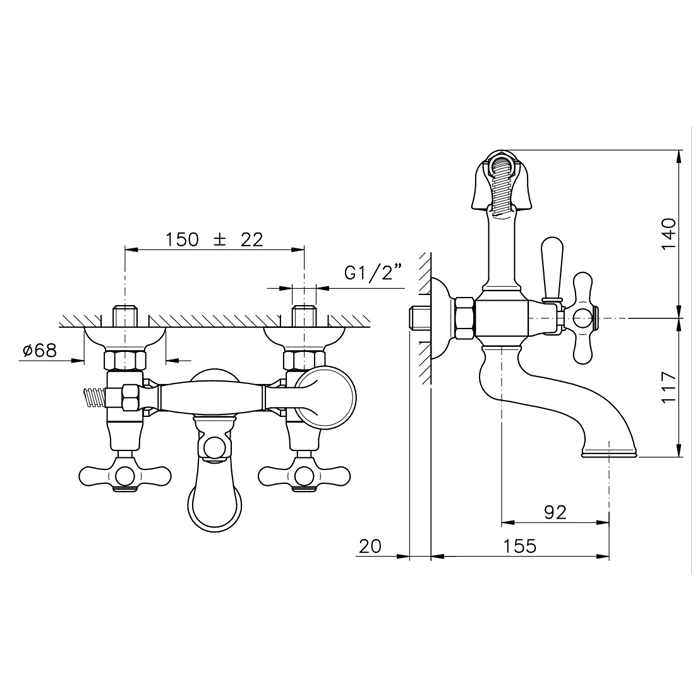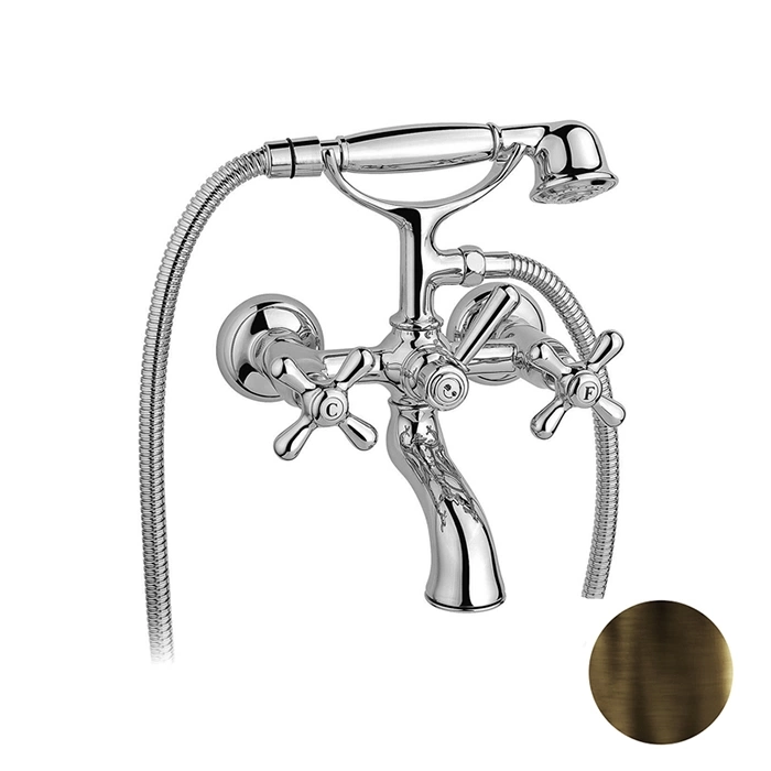 Настенный смеситель для ванны Nicolazzi Nuova Brenta с двумя ручками и душевой лейкой в тёмной бронзе (2501DB)