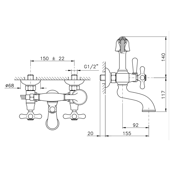 - Управление двумя раздельными ручками: одна контролирует подачу горячей, другая - холодной воды, что позволяет легко и точно настроить желаемую температуру.