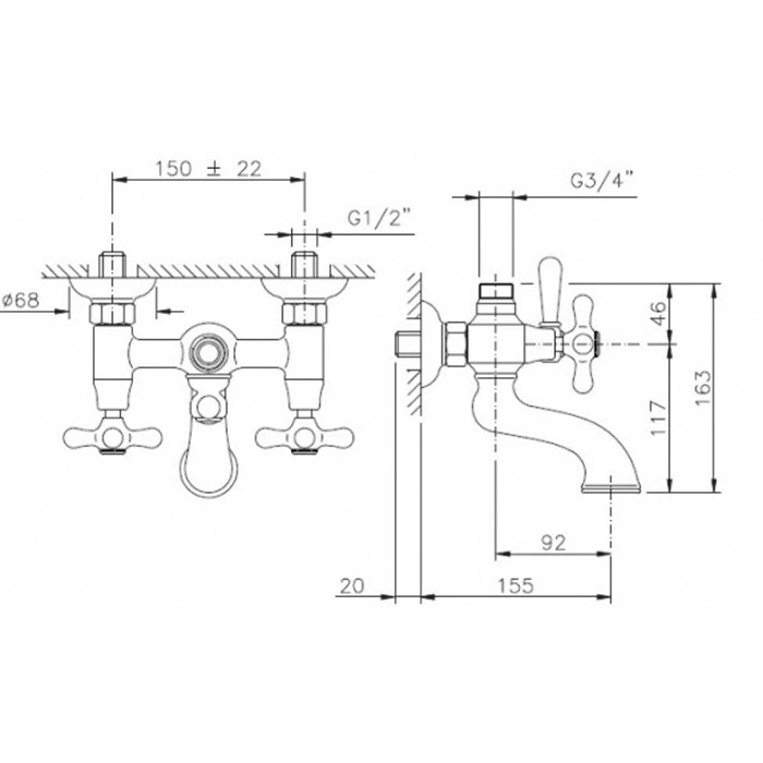 Смеситель для ванны Nicolazzi Nuova Brenta с переключателем и подключением для душевой стойки