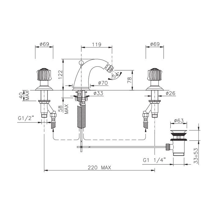 - Высота излива: 119 мм, оптимальная для гигиенических процедур.