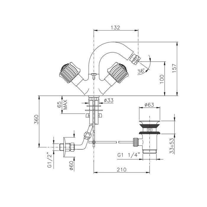 - Тип монтажа: Вертикальная установка на чашу биде.